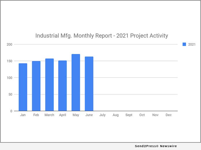 JACKSONVILLE, Fla. /Massachusetts Newswire – National News/ — SalesLeads announced today the June 2021 results for the new planned capital project spending report for the Industrial Manufacturing industry. The Firm tracks North American planned industrial capital project activity; including facility expansions, new plant construction and significant equipment modernization projects. Research confirms 163 new projects in the Industrial Manufacturing sector.