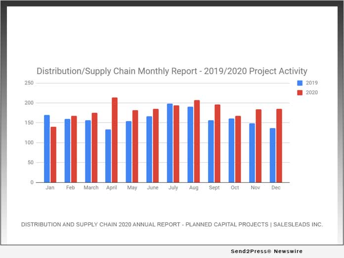 JACKSONVILLE BEACH, Fla., Jan 26, 2021 (SEND2PRESS NEWSWIRE) — SalesLeads announced today the CY 2020 results for new planned capital project spending report for the Distribution and Supply Chain industry. The Firm tracks North American planned industrial capital project activity; including facility expansions, new plant construction and significant equipment modernization projects. Research confirms 2,198 new projects in the Industrial Manufacturing sector identified in 2020.
